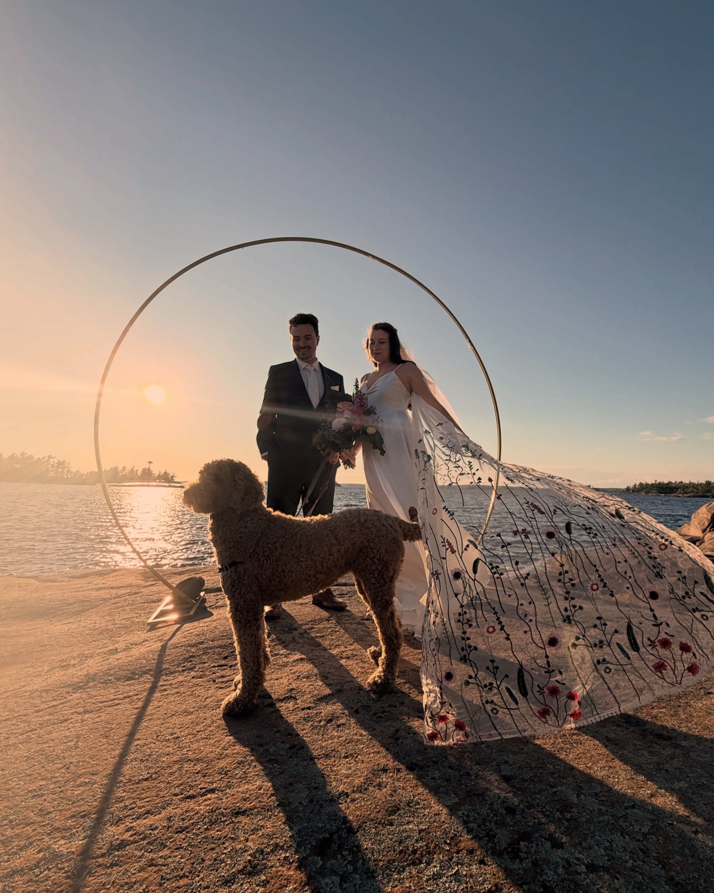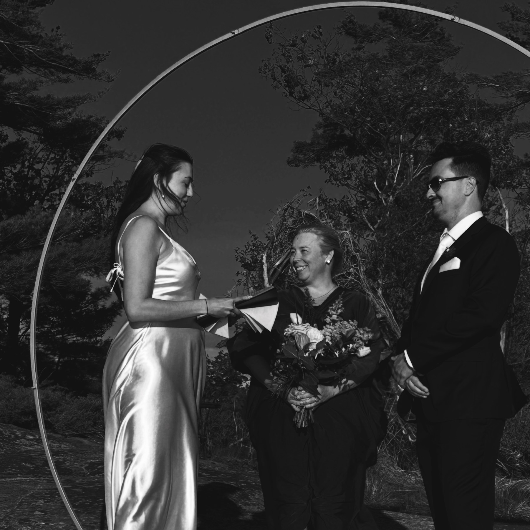 Couples love this arch because it instantly transforms any spot into a sacred stage. It offers just enough structure to highlight the moment while still feeling organic and free. For some we leave it minimalist and striking, while for others we adorn it with florals, greenery, or lanterns – every wedding is different and each one is in a unique location. Just as every day is different and unique on Georgian Bay, yours is YOURS forever.
