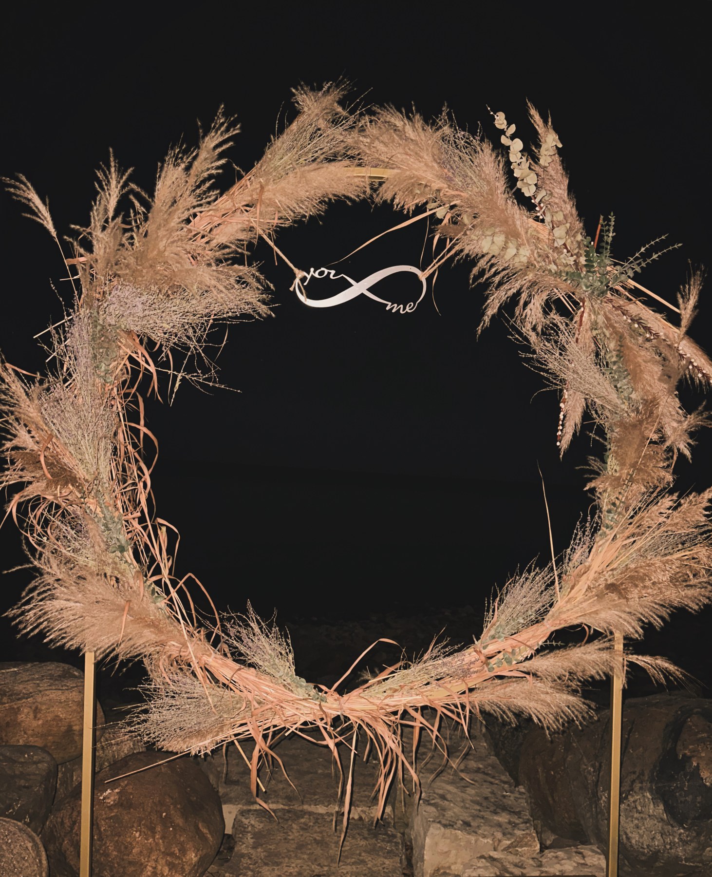 We love this arch because it’s light, sturdy and we can literally take it anywhere with an easy set up for a dramatic effect!